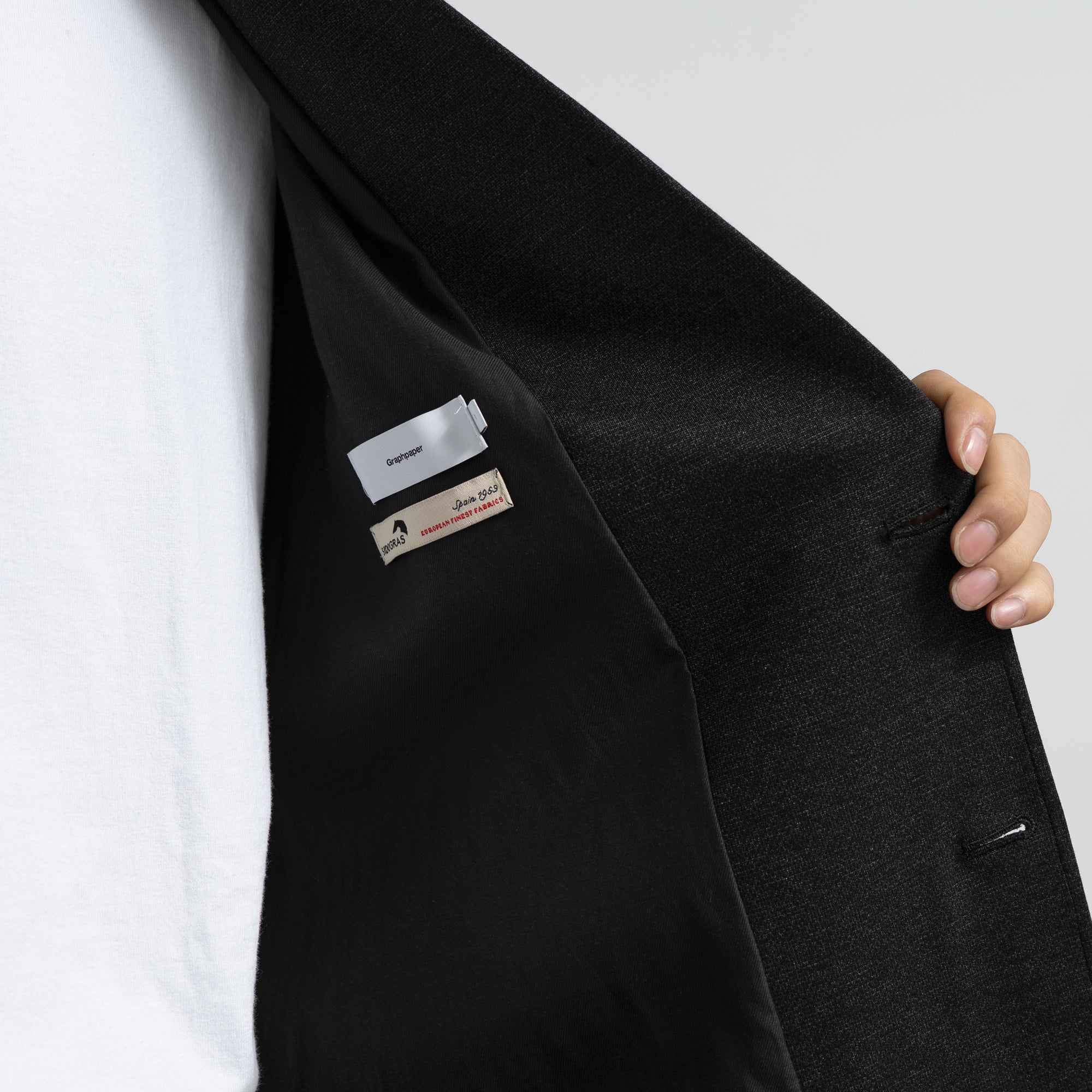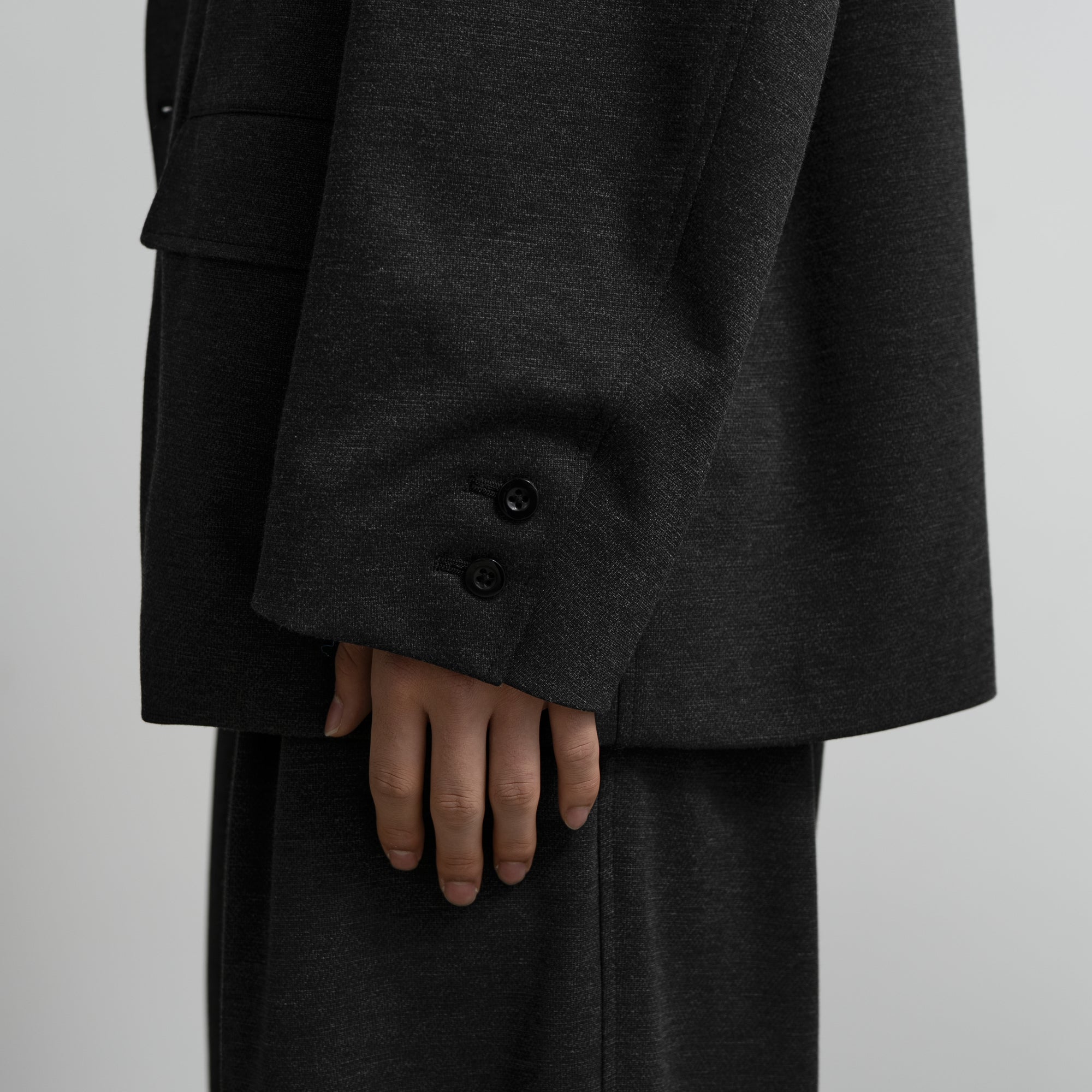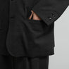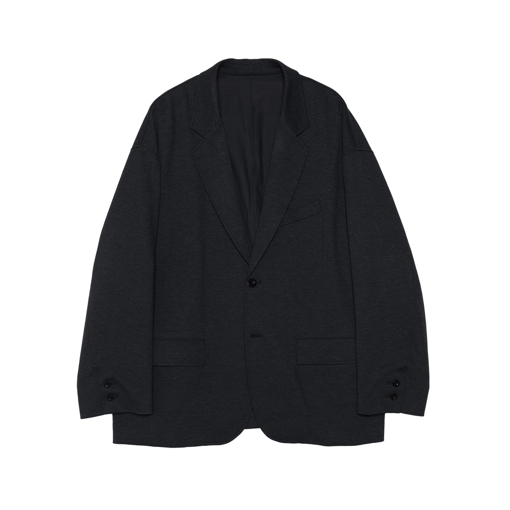 スペイン・バルセロナに拠点を持つSIDOGRAS(シドグラス)社のヴィスコースポンチを使用。布帛のような滑らかなタッチと、ハリがありながら馴染みやすいしなやかさが特徴。ドロップショルダーでボリュームのあるシルエットのジャケット。動きやすくアクティブなスーチングスタイルが楽しめる。