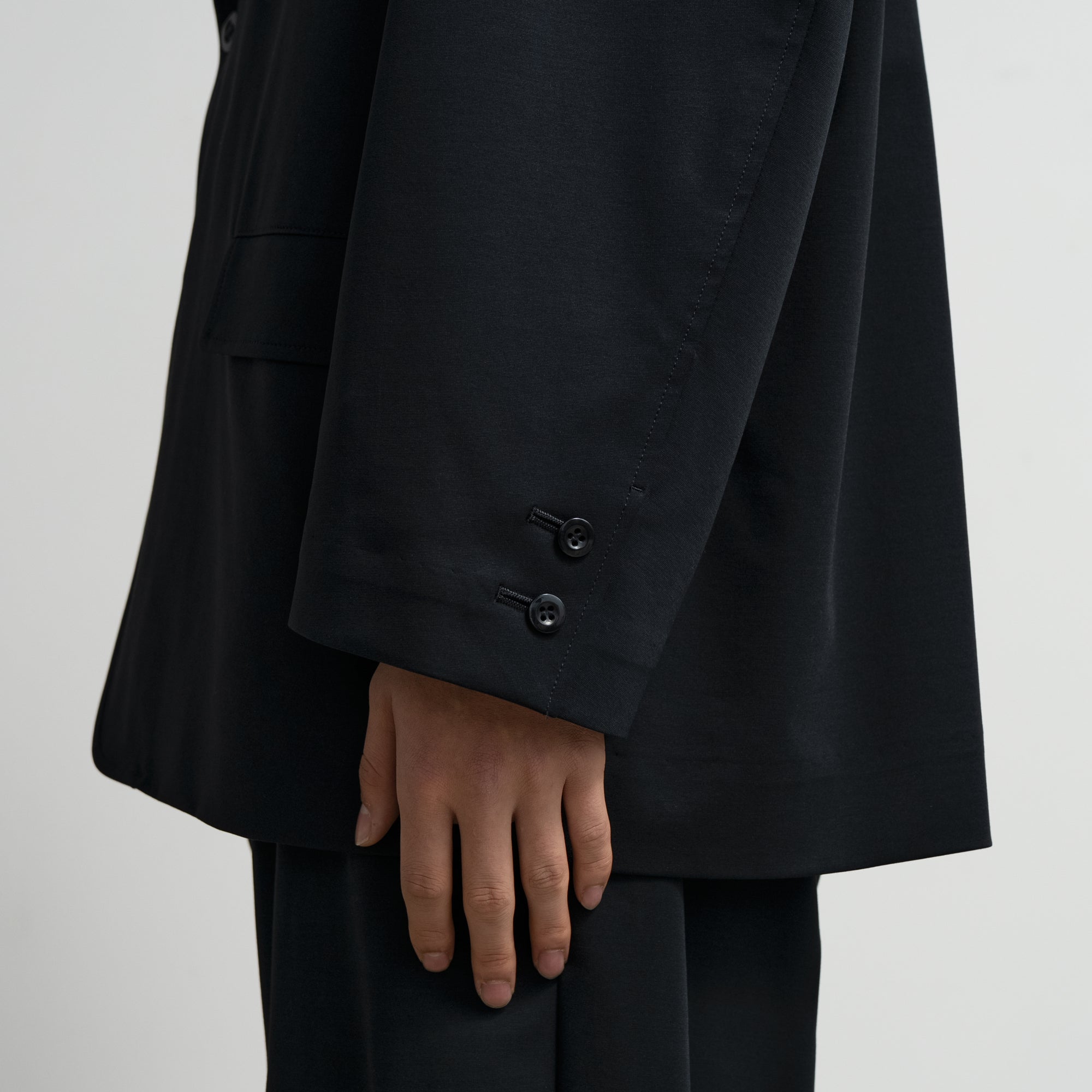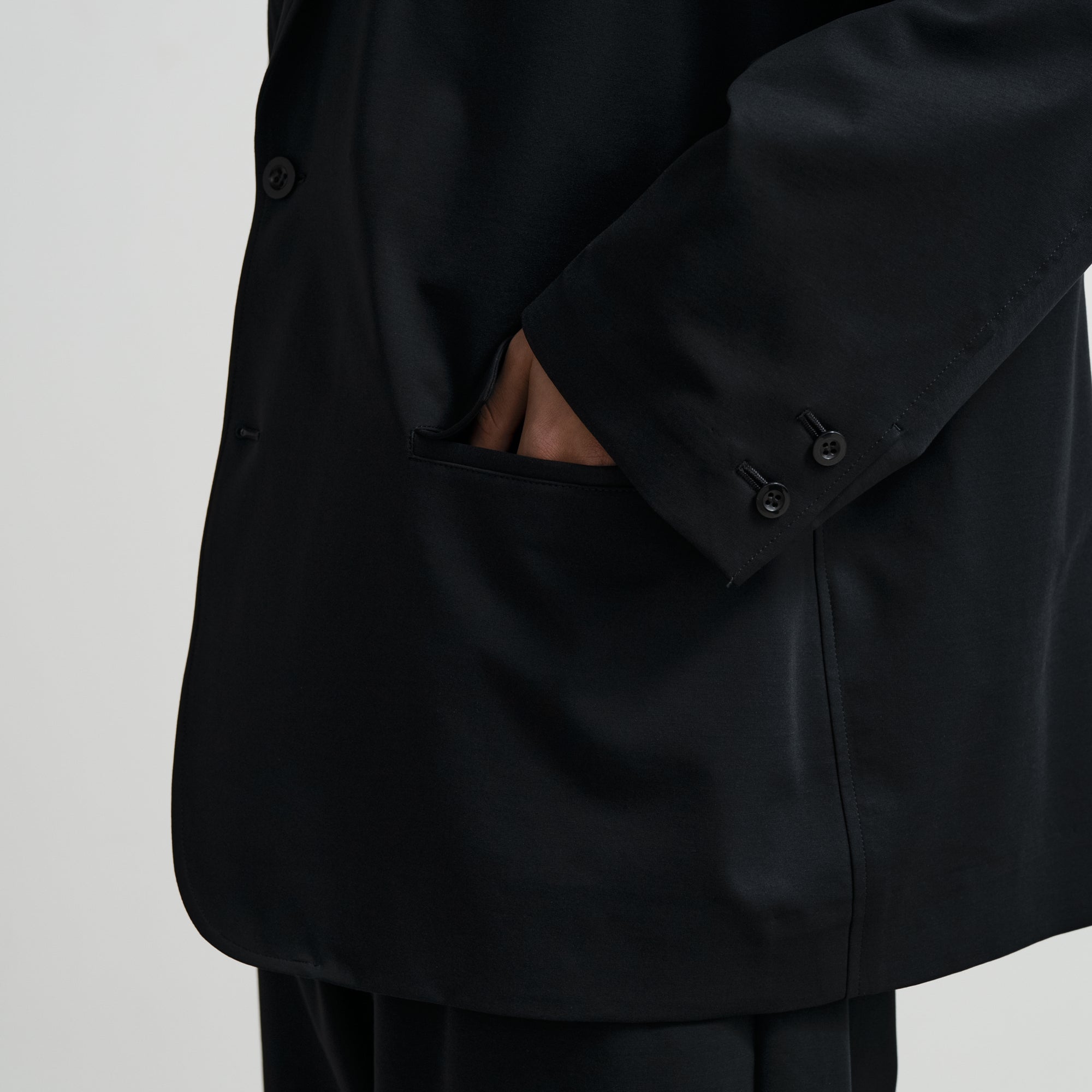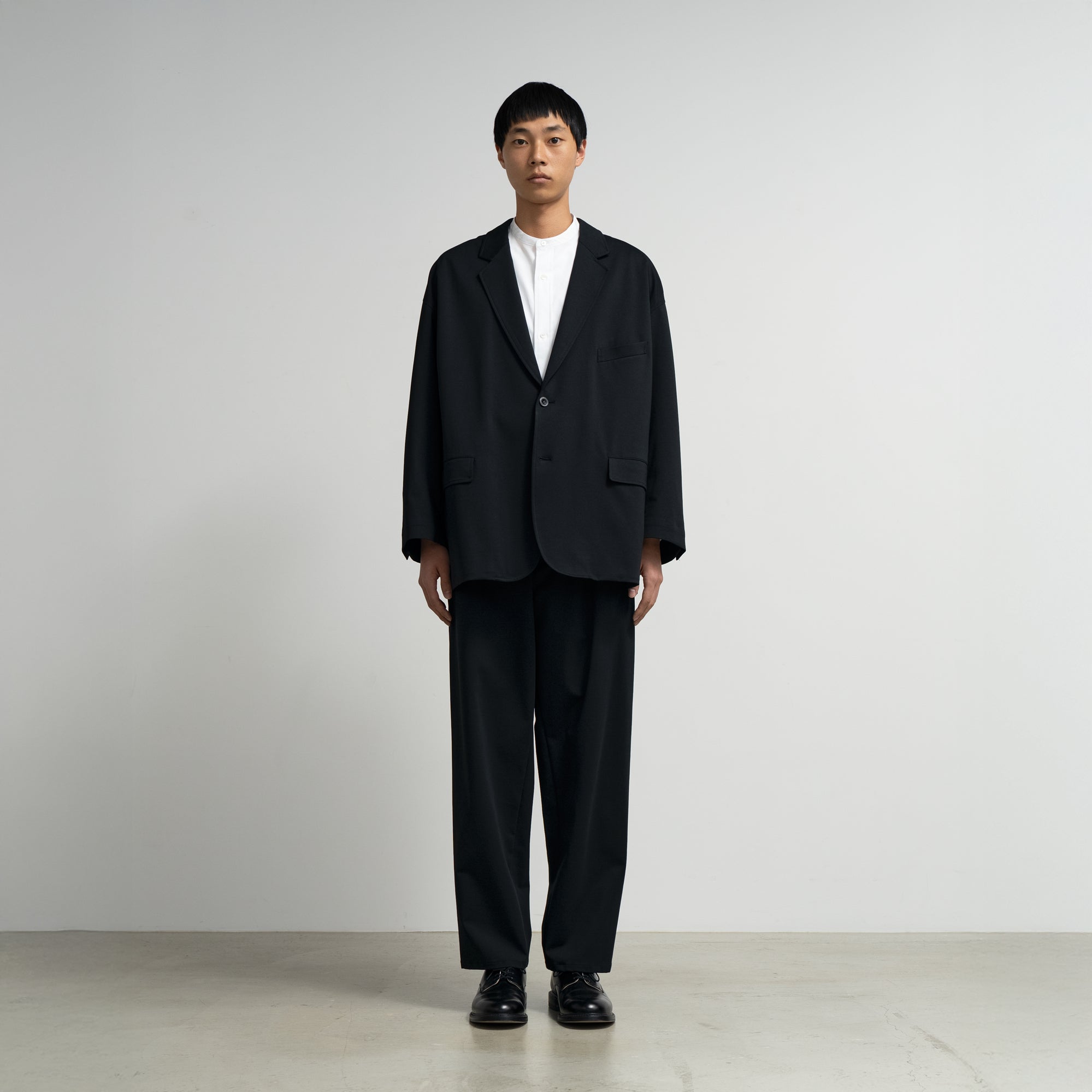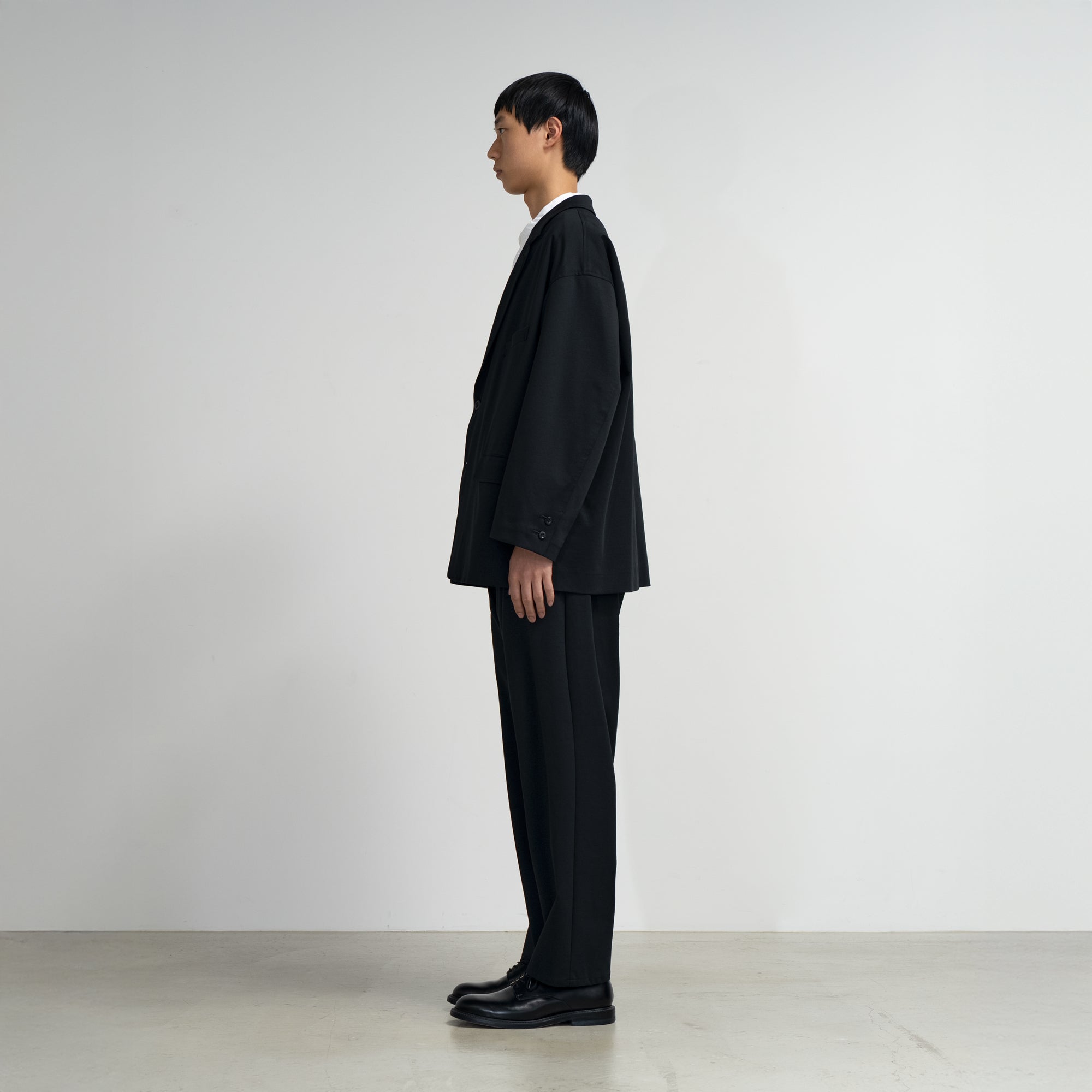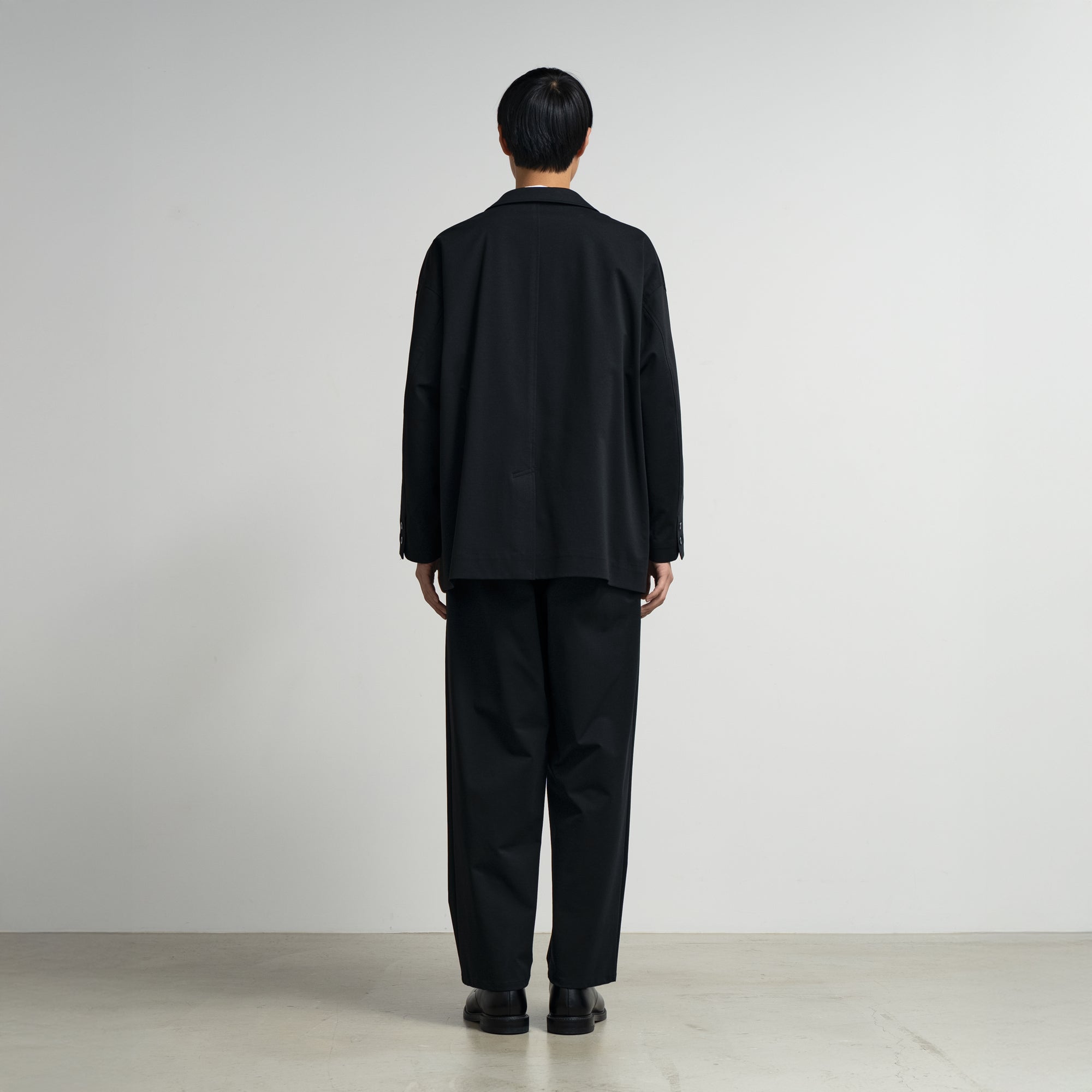 ドロップショルダーでボリュームのあるシルエットのジャケット。