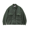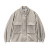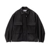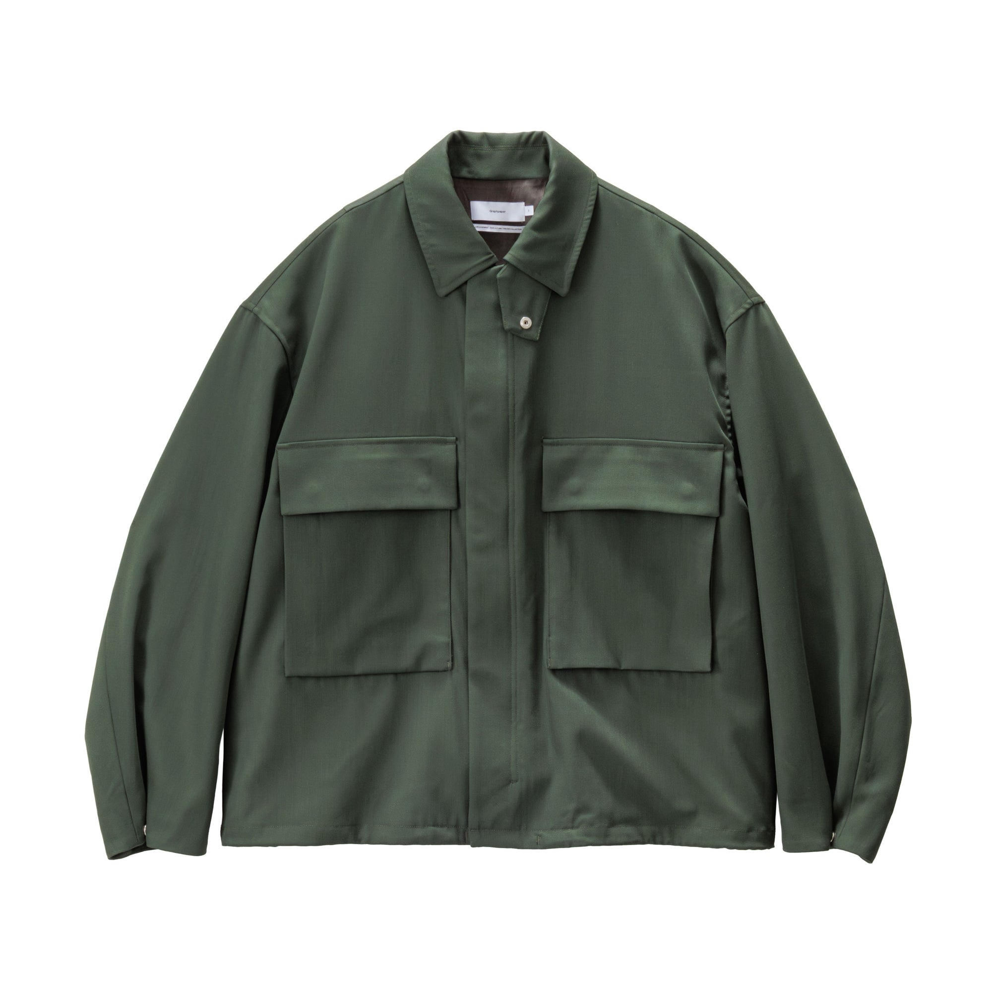 特殊な紡績技術によって、ウールの持つ自然な風合いを損なうことなく、ナイロンの優れた形態安定性および耐久性を兼ね備えた、ハイブリッドなギャバジン。USフィールドブルゾンをソースにした両胸のパッチポケットが特徴的な一着。チンフラップを配備することで、衿を立て表情の変化を楽しめる。
