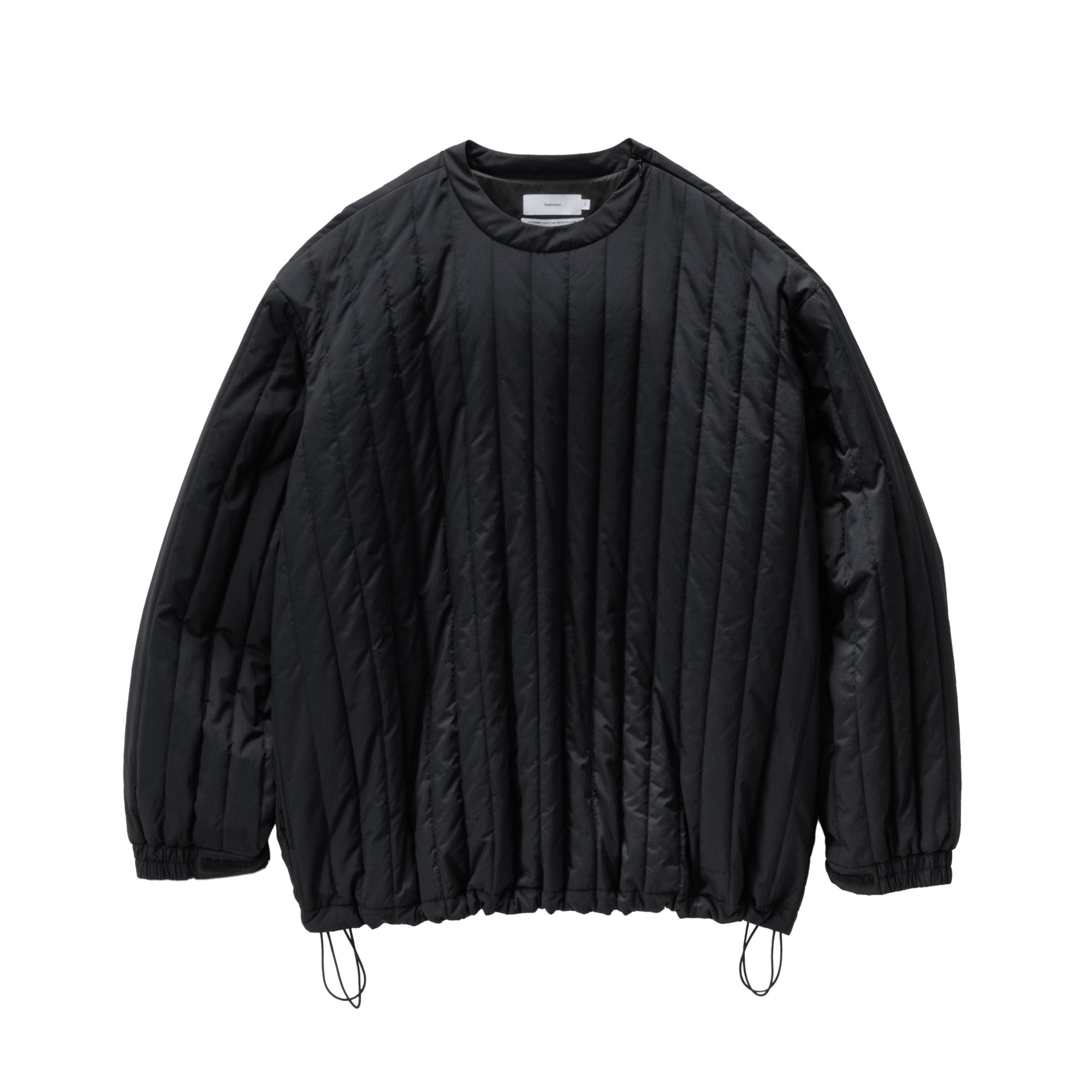 1979年に英国の登山家が開発したPERTEXは、極薄で軽量、かつ強靭なナイロン素材。今回採用したPERTEX UNLIMITED_は、特殊な糸を使用したナチュラルな風合いで光沢感を抑え、耐久撥水性と防風性に優れた素材。暖かく軽量な膨らみのあるキルトを施したボリューム感のあるプルオーバー。