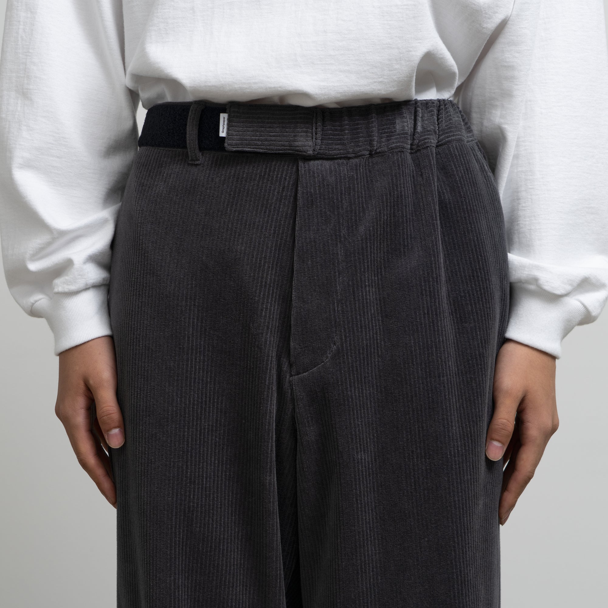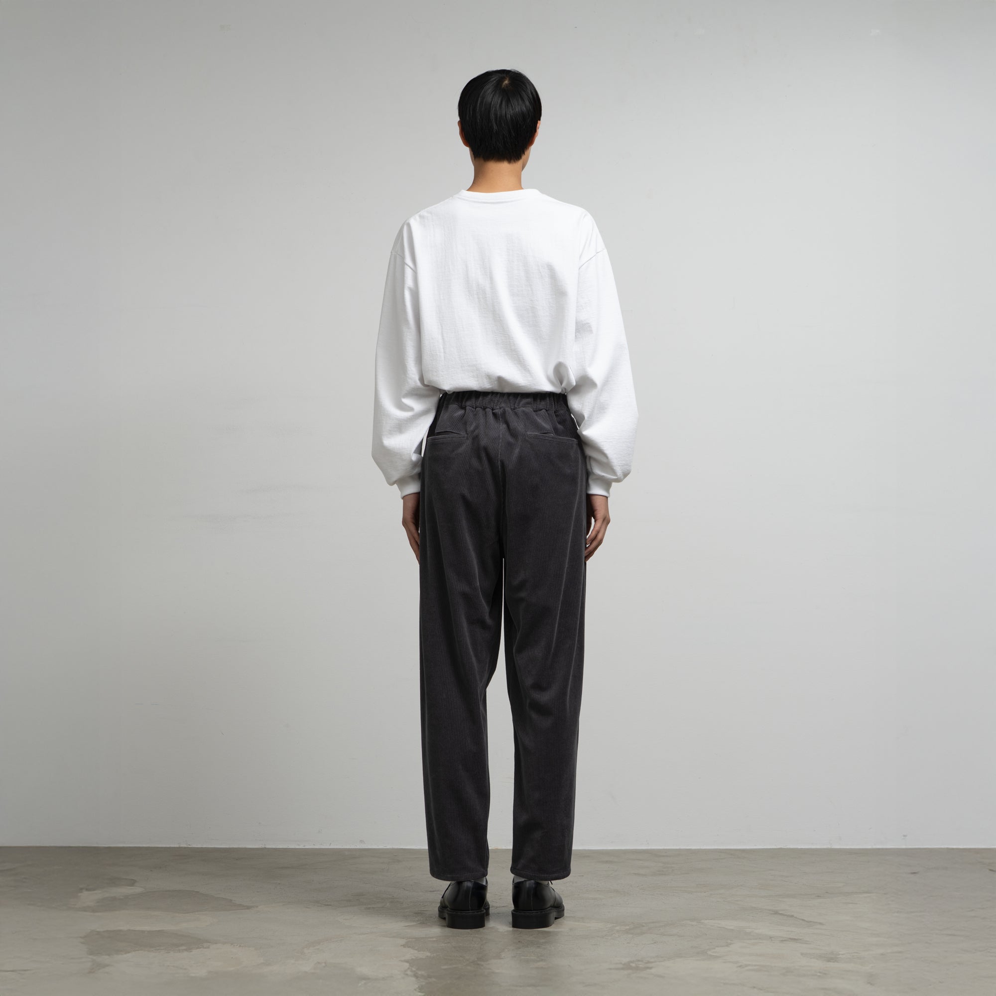 ベロアの編み機を使い24AWシーズンより滑らかさと立体感を出したニットコーデュロイ。キックバックの良さは変わらず型崩れしにくい。ウエストのサイズを簡単に調整できてシルエットもアレンジできるブランド定番のテーパードパンツ。ストレッチ性のある快適な着用感で動きやすくアクティブな1本。