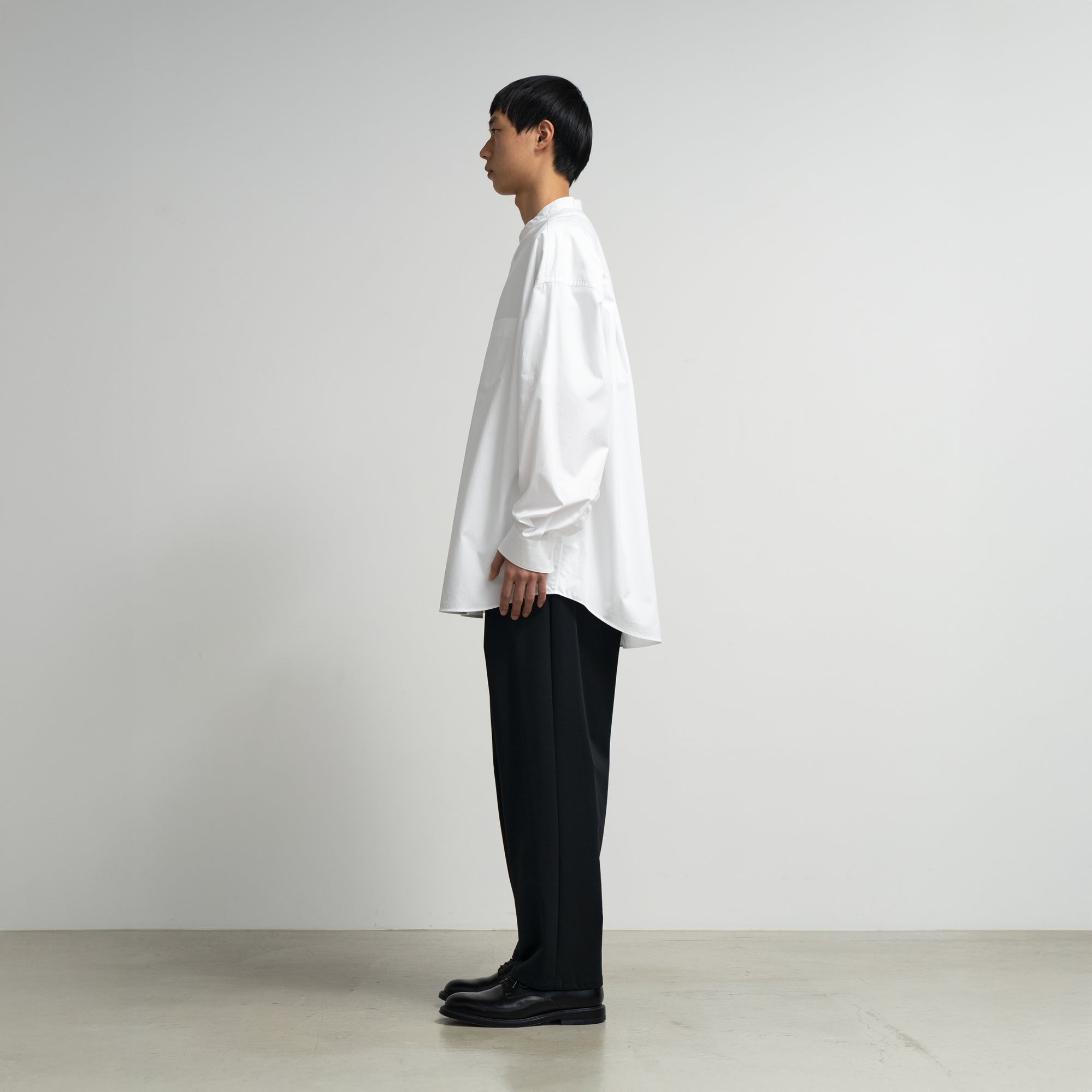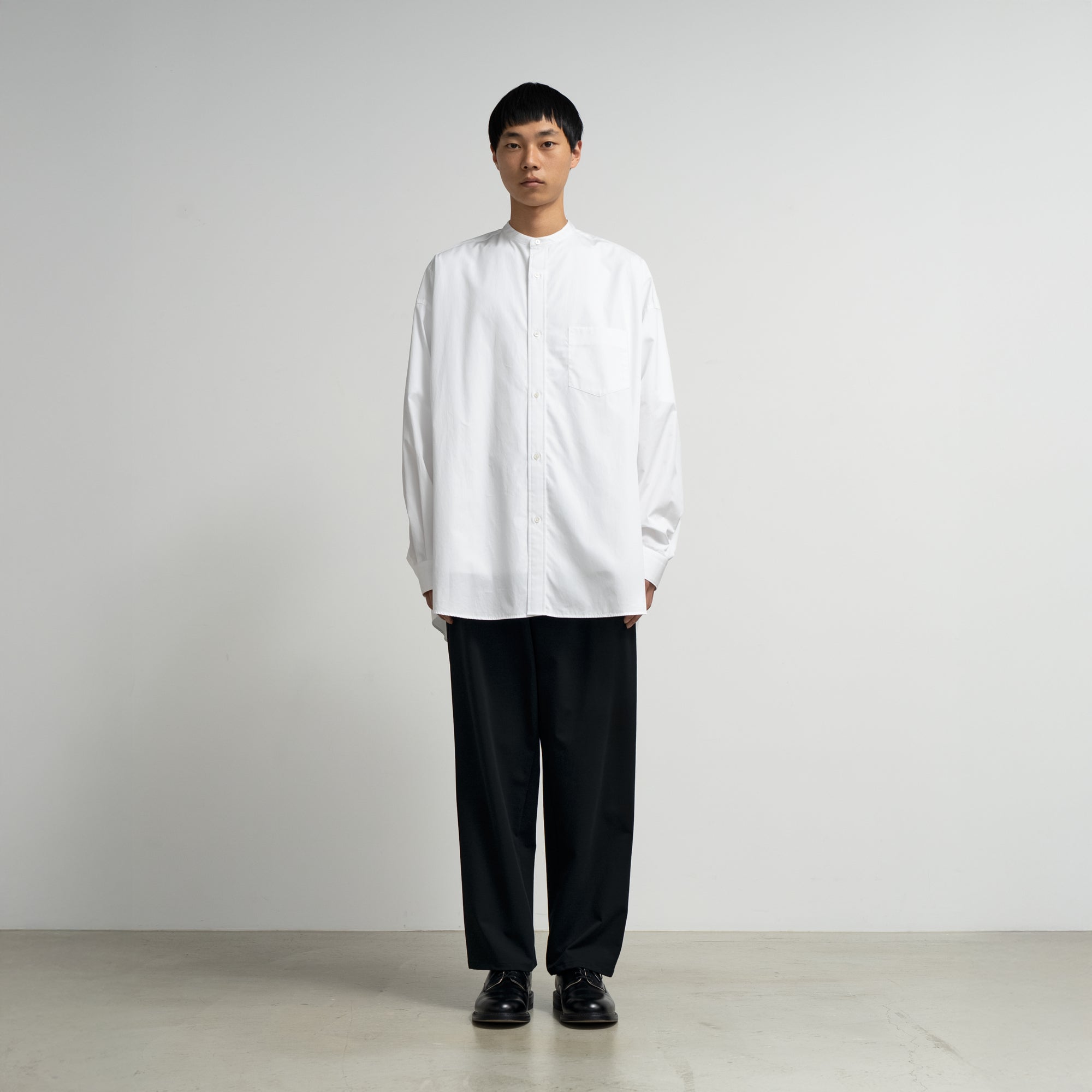 [BASIC] High Count Band Collar Round Cut Oversized Shirt