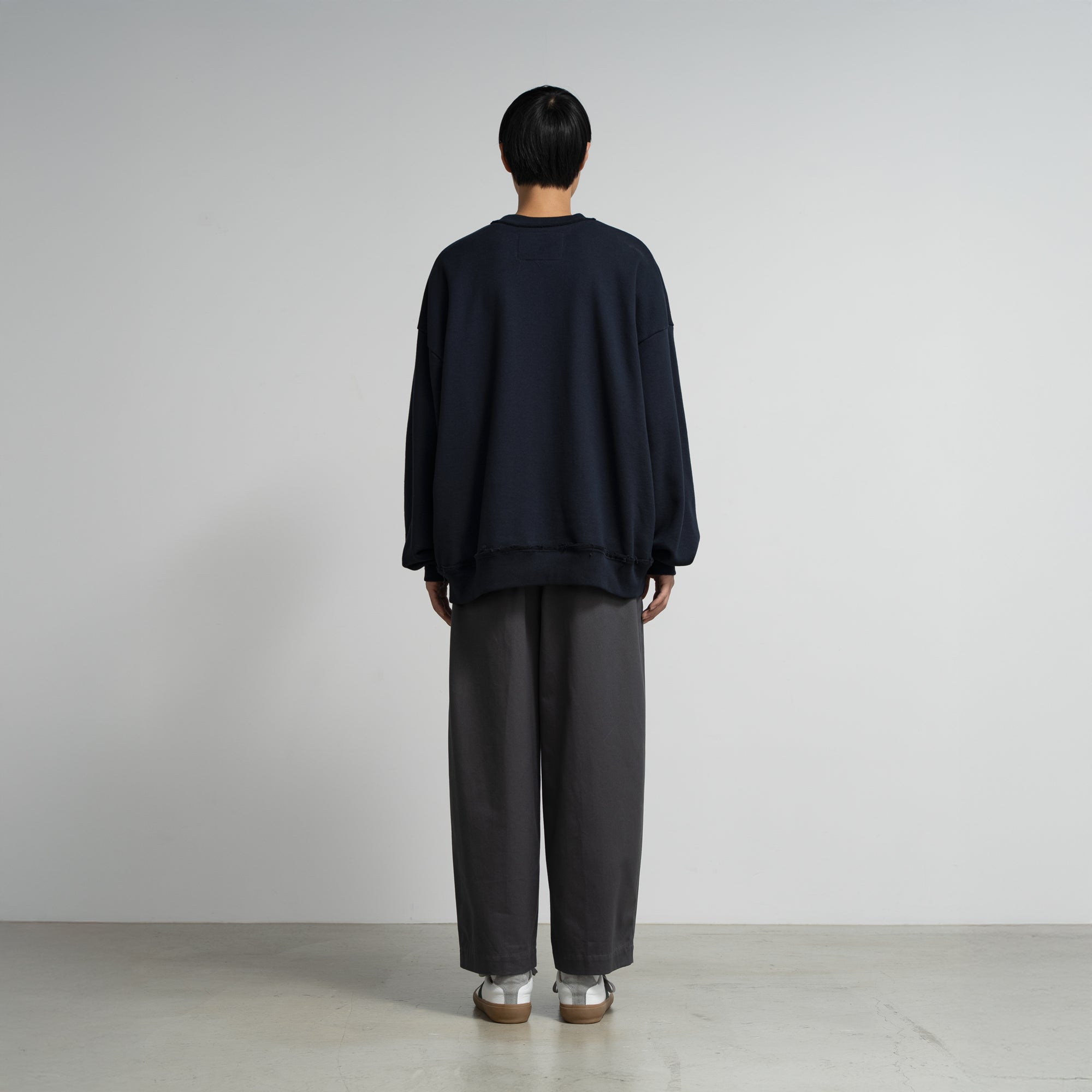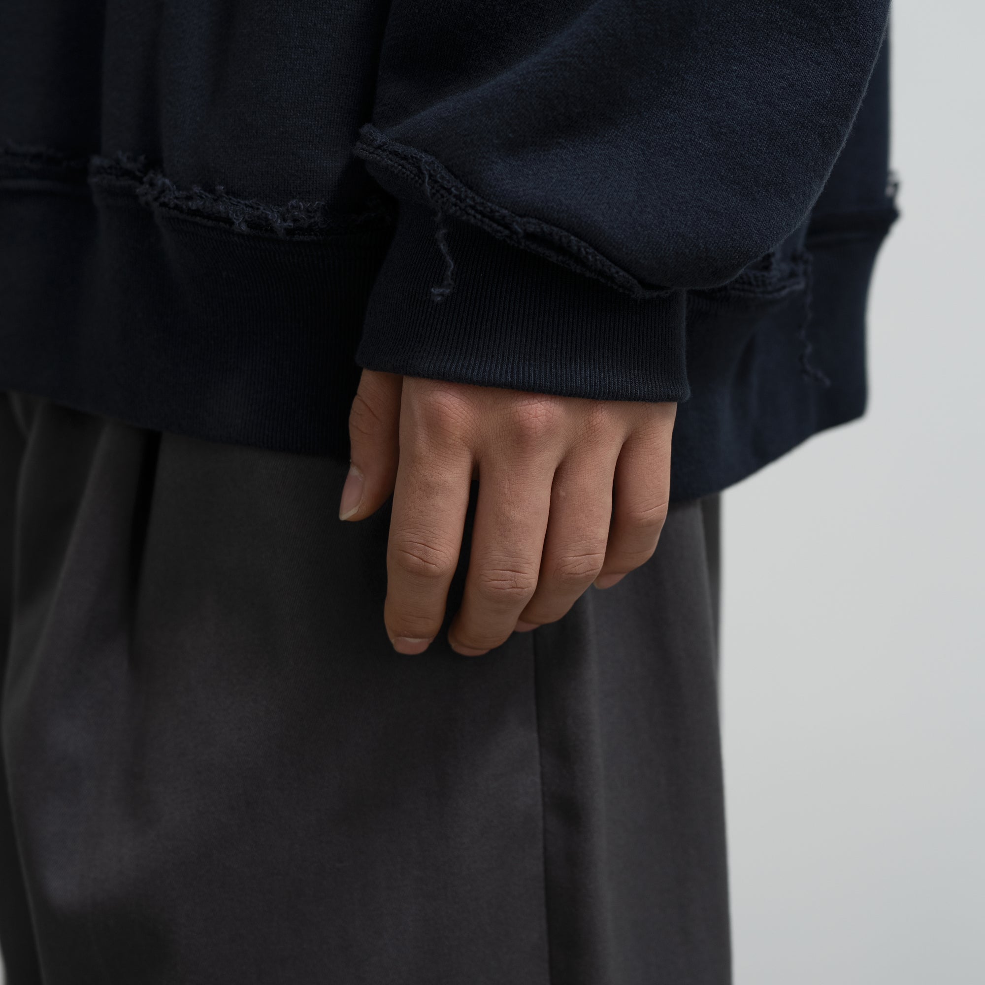 ※本製品は、素材の風合いやデザインを活かすため、袖口や裾に断ち切りの仕様を施しています。着用を重ねることで生地端にほつれが生じる場合がございますが、製品特性としてご理解ください。
