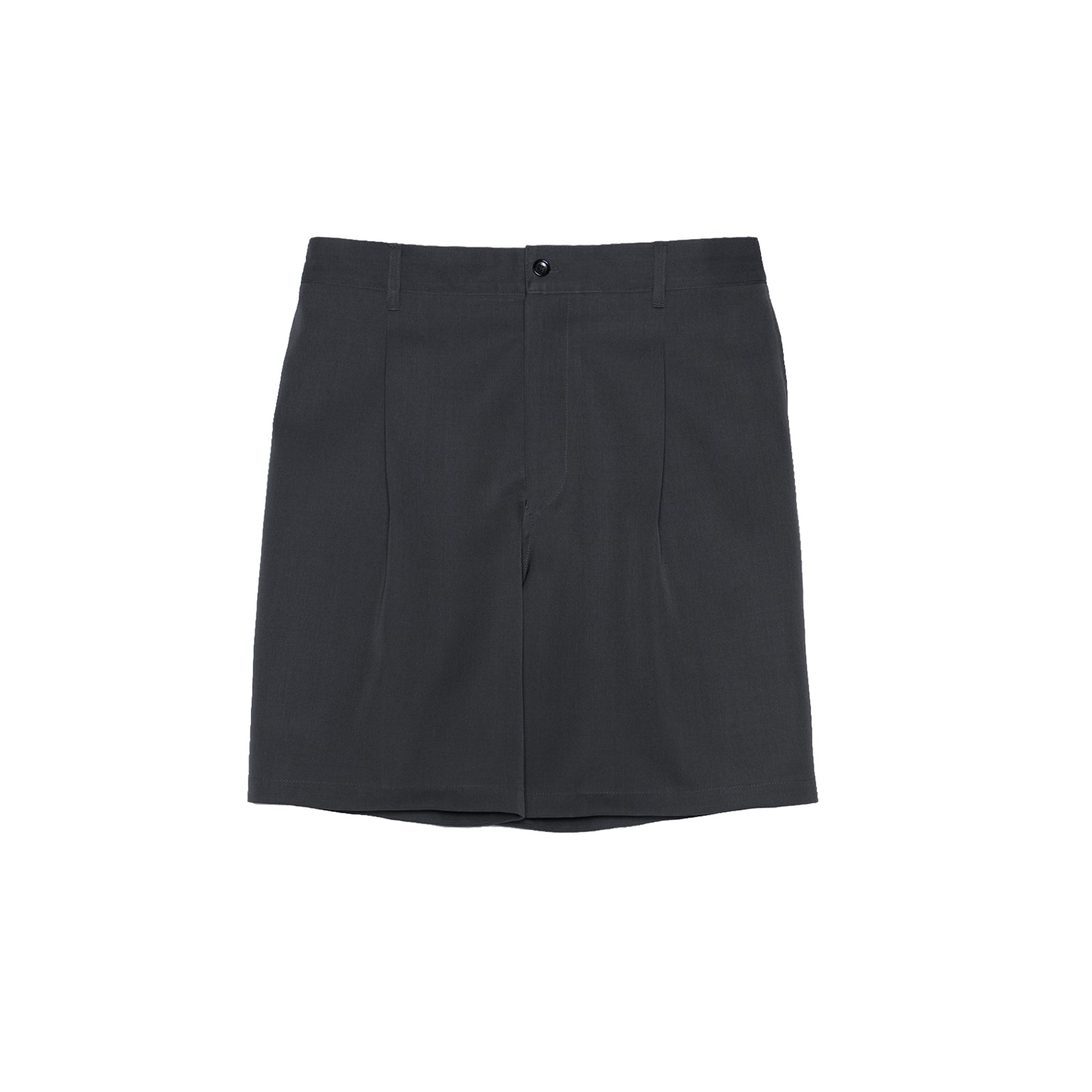 最も美しい綾目を表現するため、縦糸を高密度に、横糸は限界まで打ち込んだウールギャバジン。特殊な樹脂をウール繊維の内部まで染み込ませることで、フィラメントのような光沢とクリアな質感を実現しました。26SSシーズンでは、ワイドテーパードシルエットをベースにしたショートパンツが新たにラインナップ。