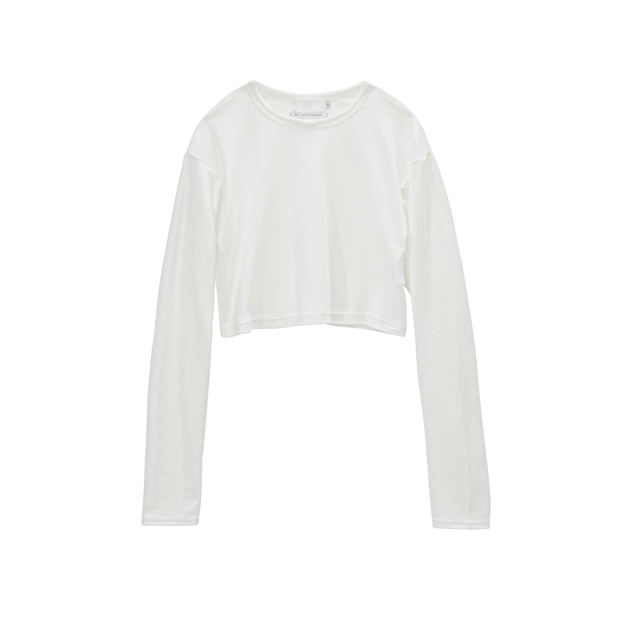大胆にカッティングしたレングスが特徴の、コンパクトなロングスリーブTシャツ。細くしなやかな糸で編み上げたコットンスムース素材。独自の仕上げで微細な毛羽を残すことで、綿本来の自然な柔らかさに品のある風合いを加えています。