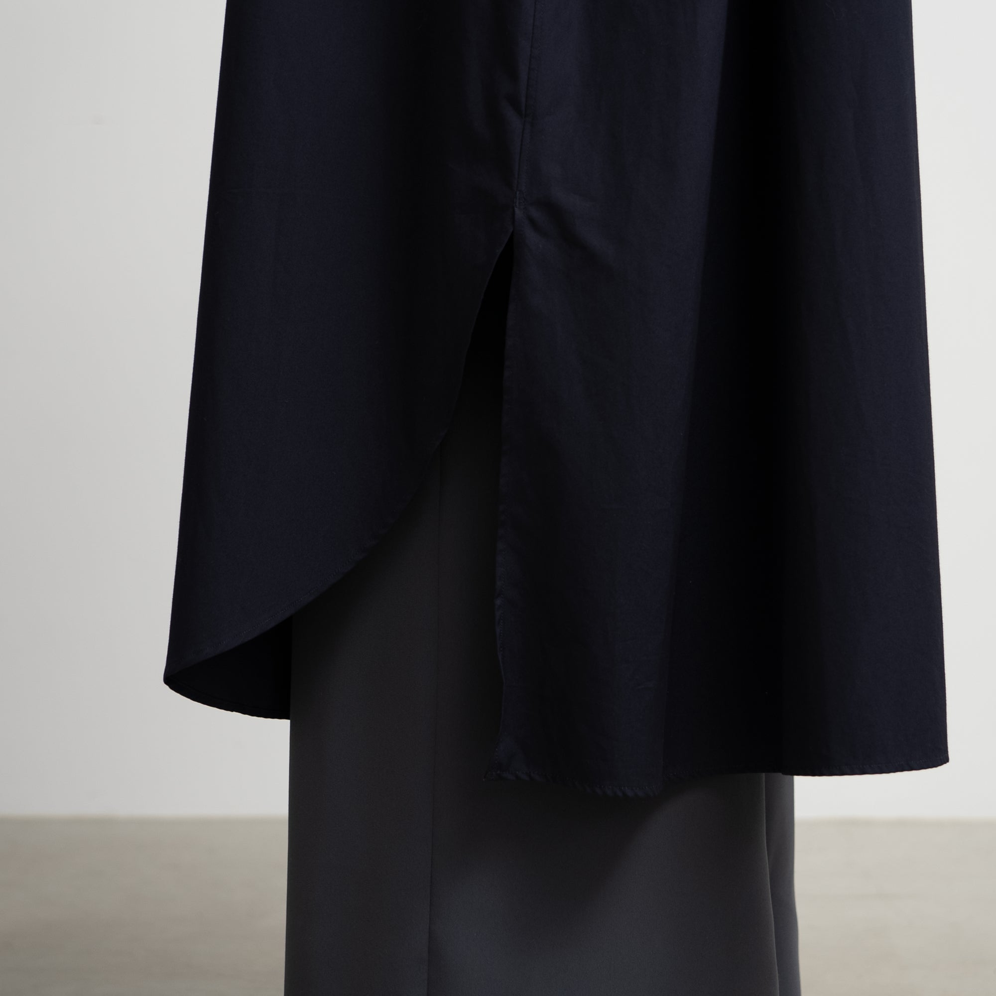 前後差寸のあるヘムラインが足さばきの良さを実現。