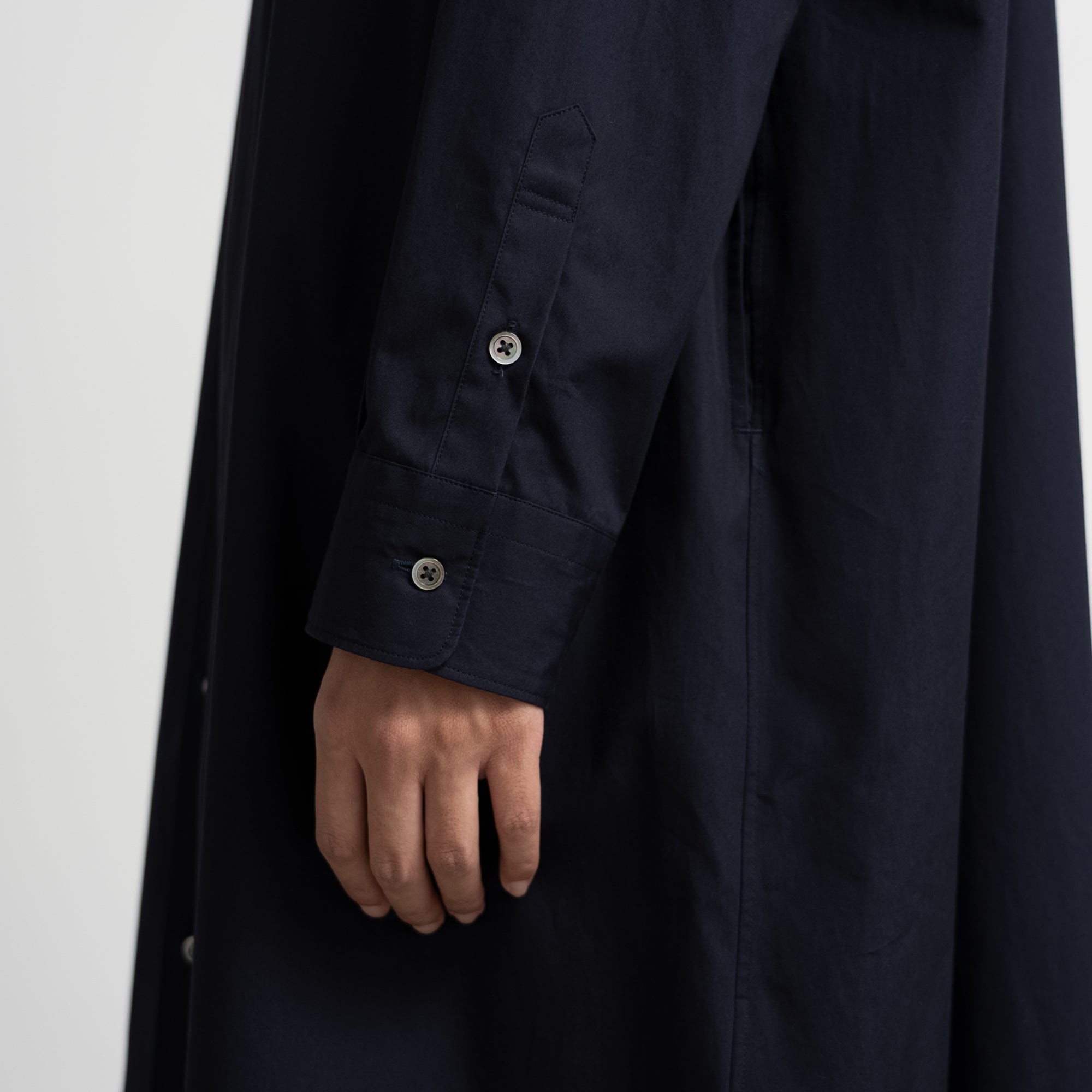 しなやかで適度な光沢感を放つスーピマコットンを用いて限界に近い密度に織り上げたクリアな表情とハリ感が特徴のハイカウントブロード。