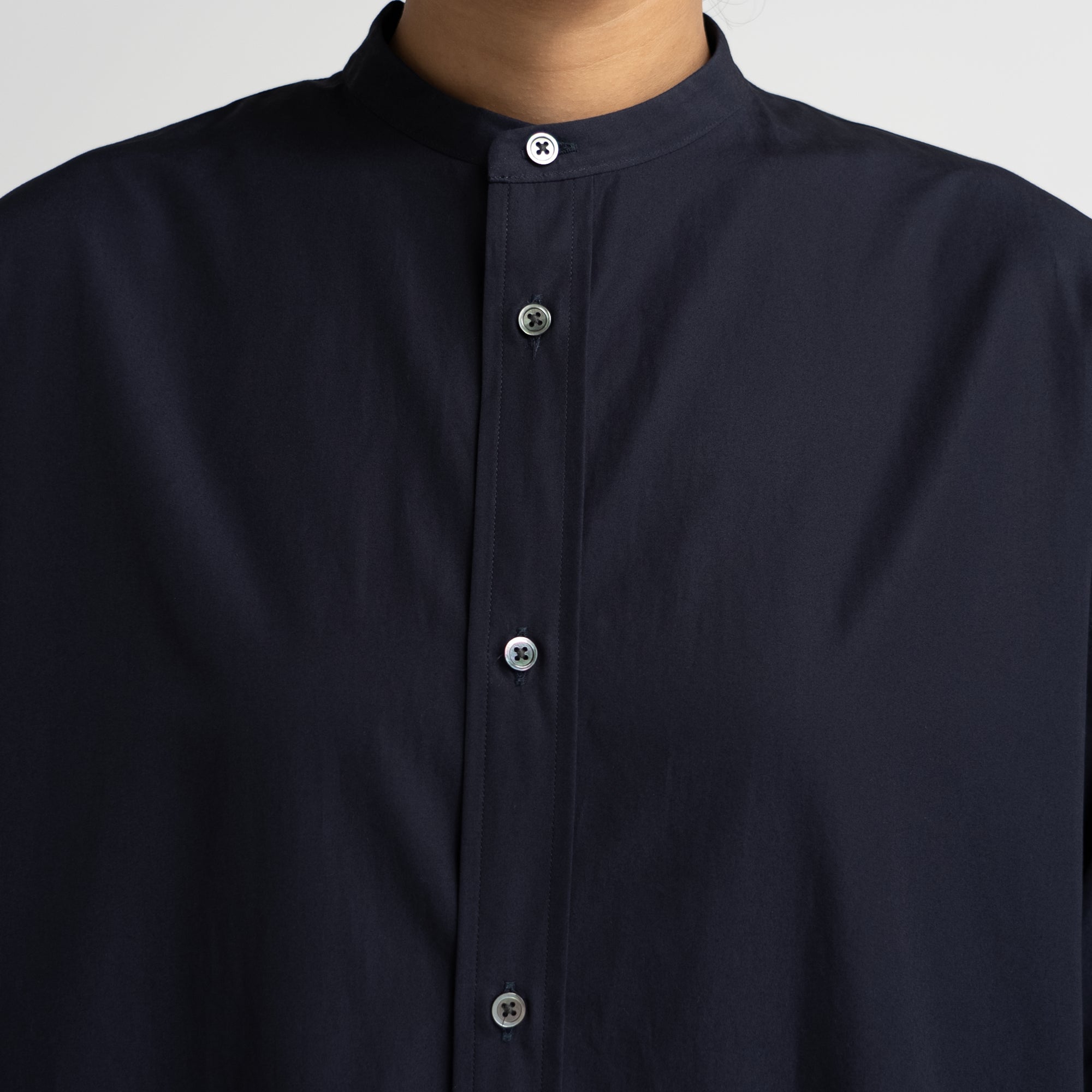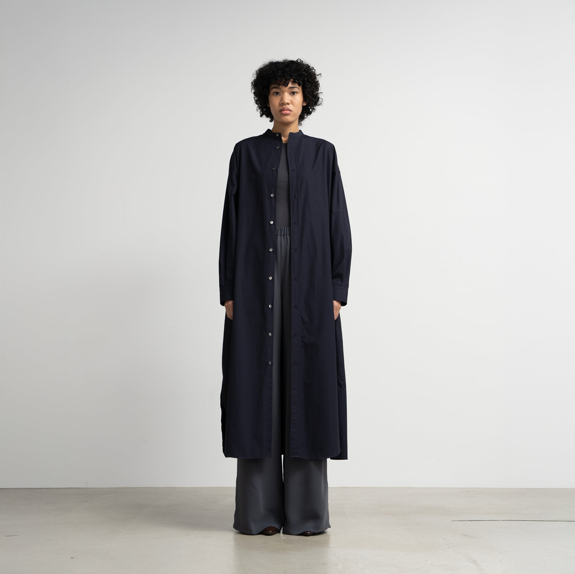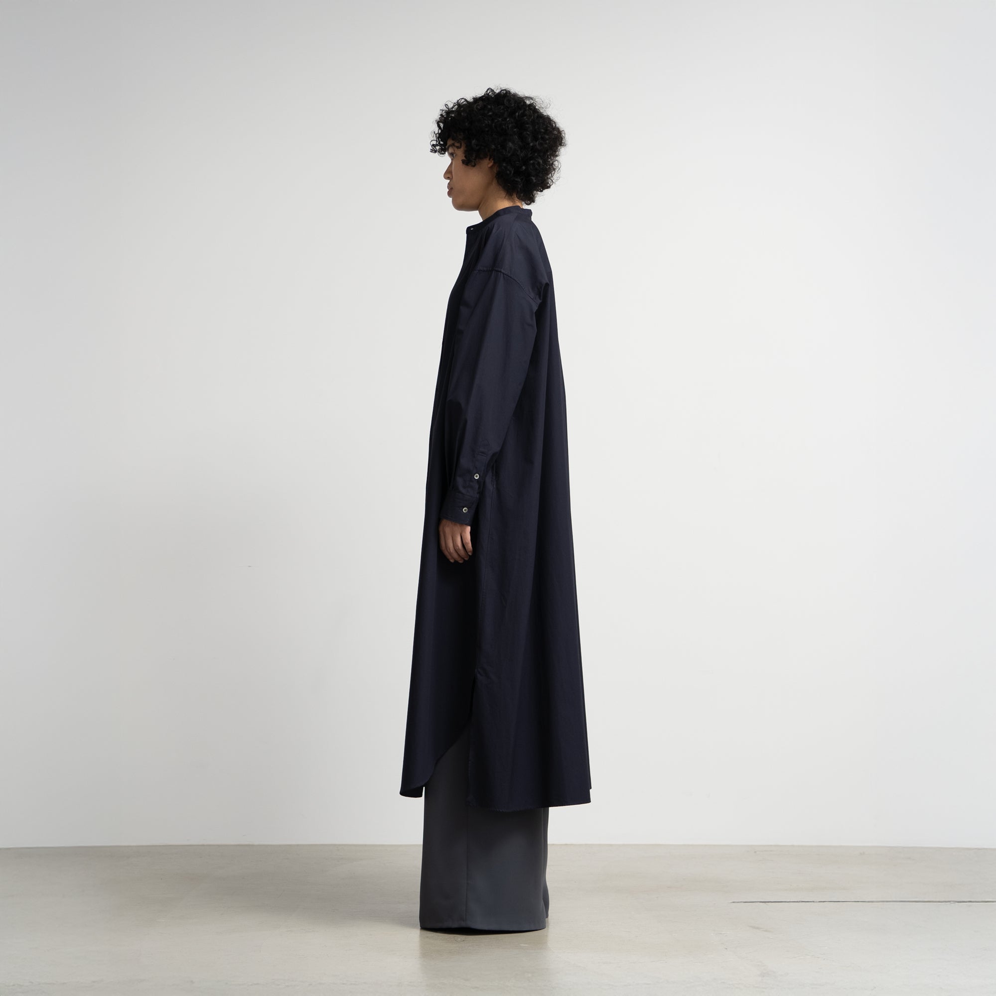 [BASIC] High Count Broad Oversized Band Collar Shirt Dress