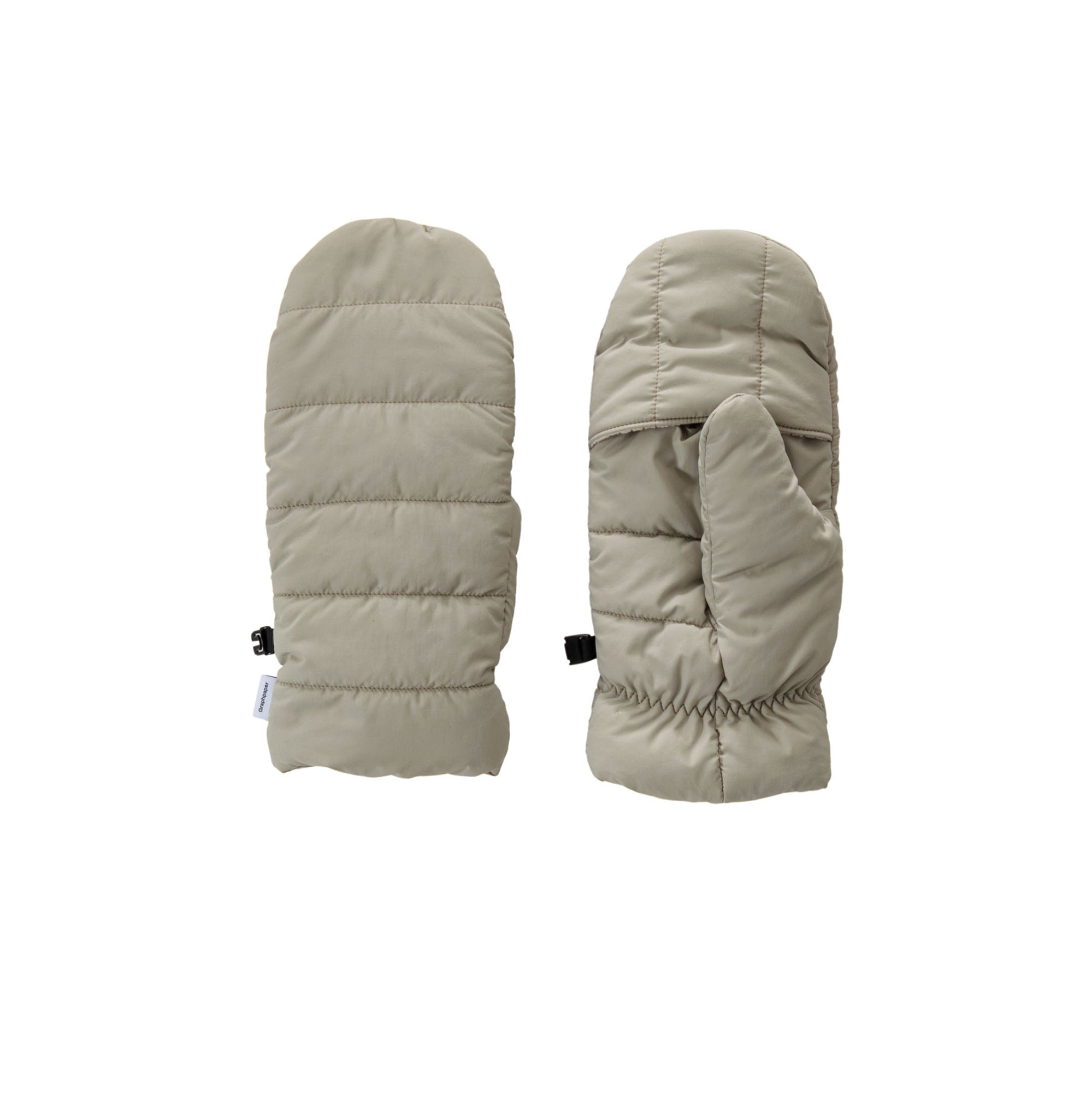 1979年に英国の登山家が開発したPERTEXは、極薄で軽量、かつ強靭なナイロン素材。今回採用したPERTEX UNLIMITED_は、特殊な糸を使用したナチュラルな風合いで光沢感を抑え、耐久撥水性と防風性に優れた素材。暖かく軽量な膨らみのあるキルトを施した丸みのあるボリューム感が特徴のミトン。裏地には高い保温性を保ちながら汗等の吸水拡散にも優れたPOLATECの "Power Grid"を採用。