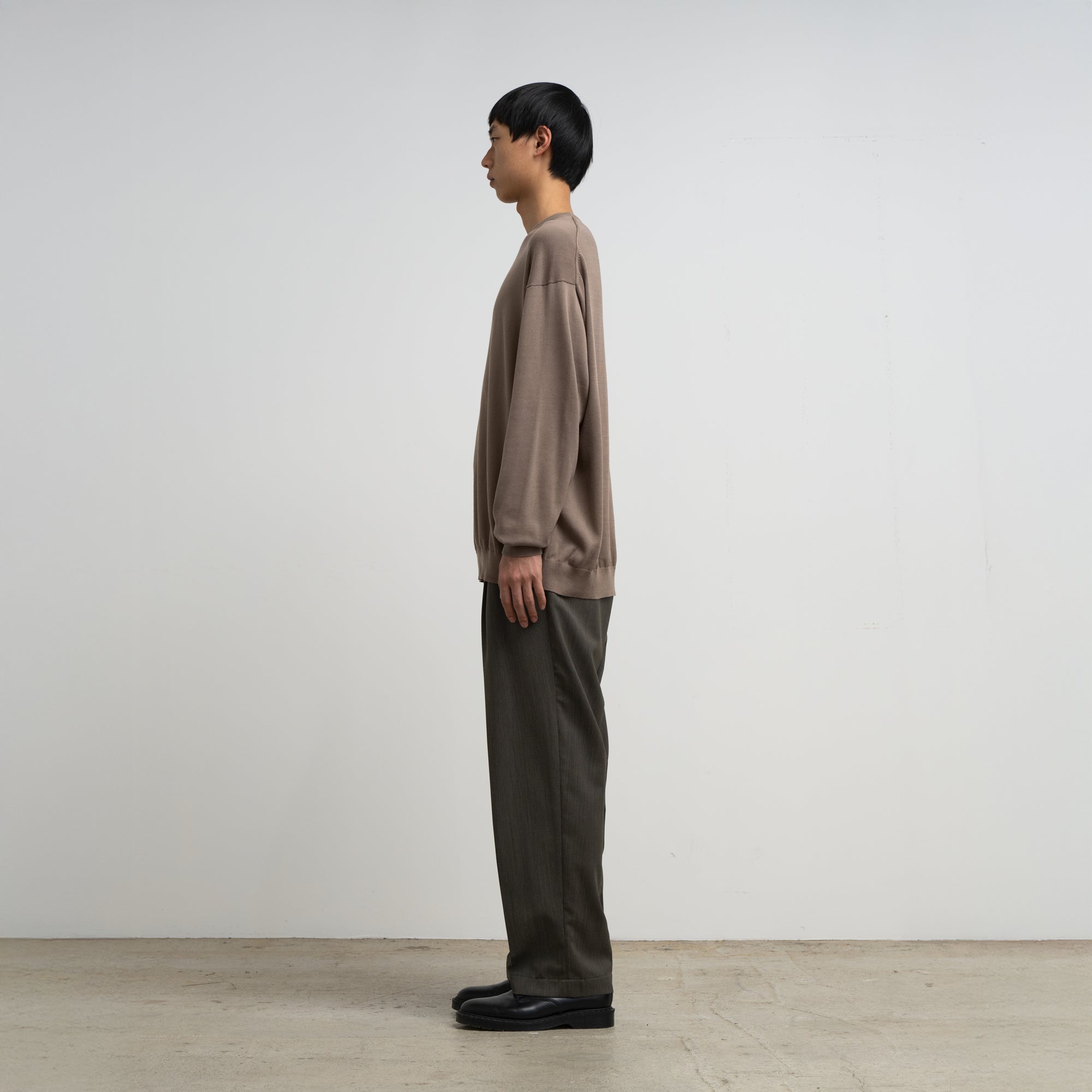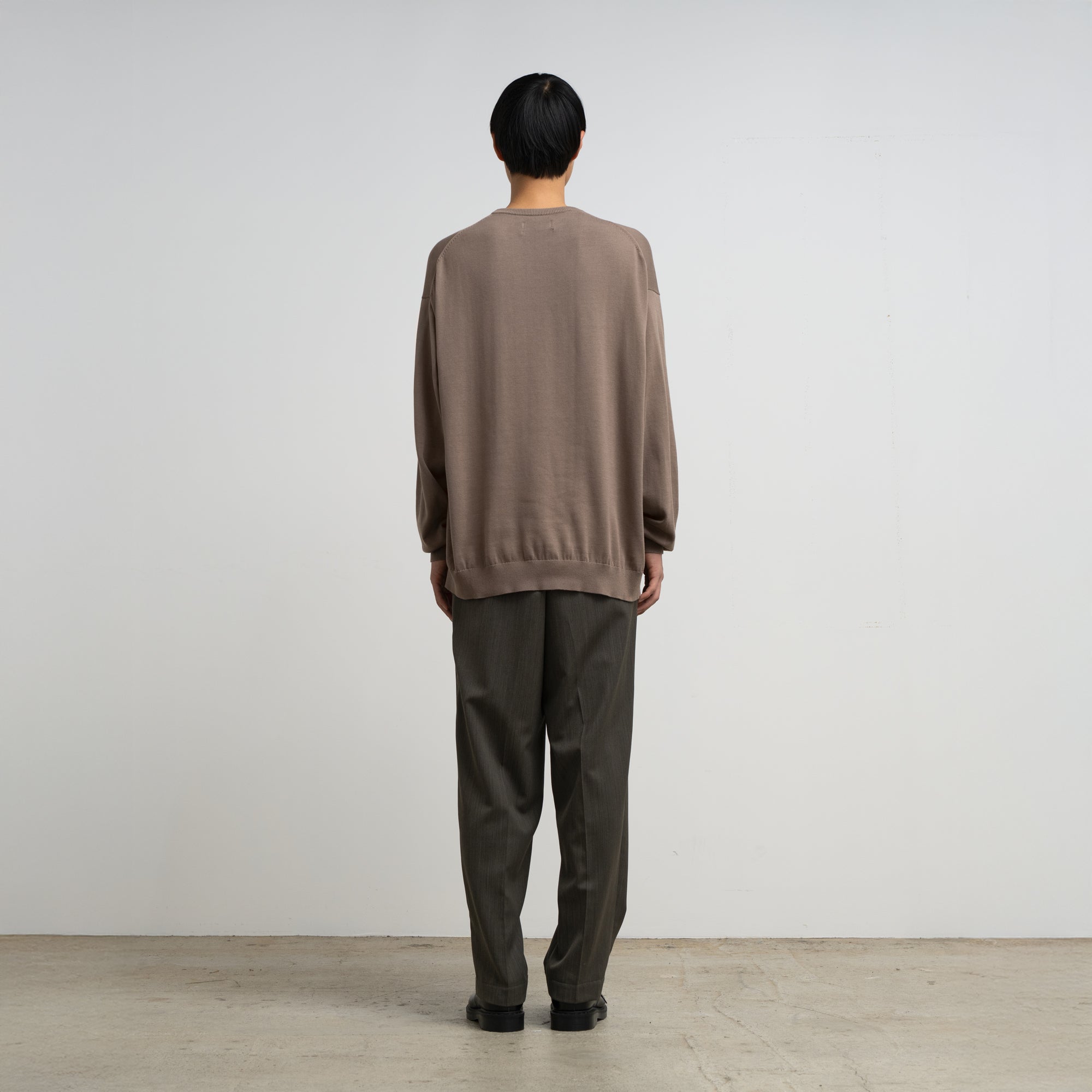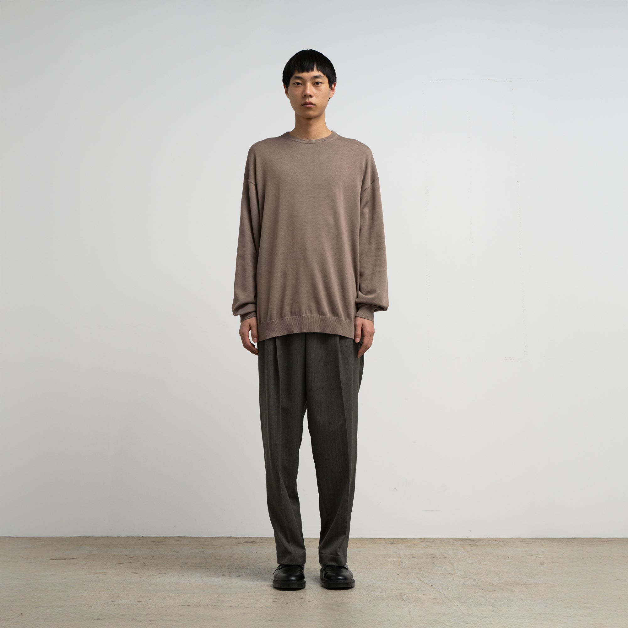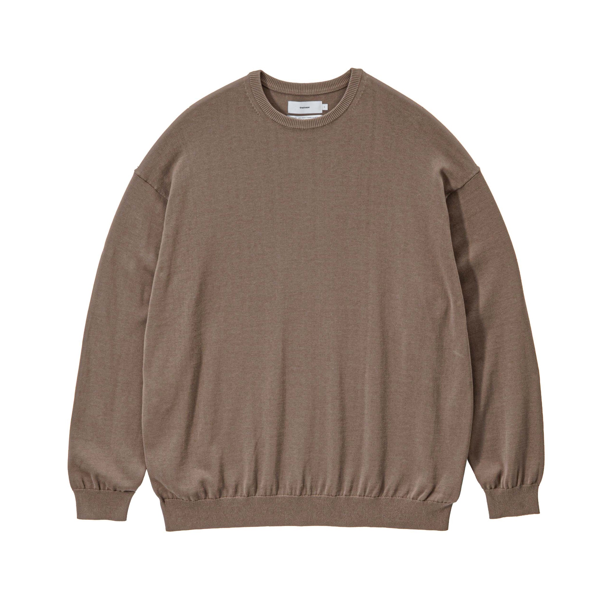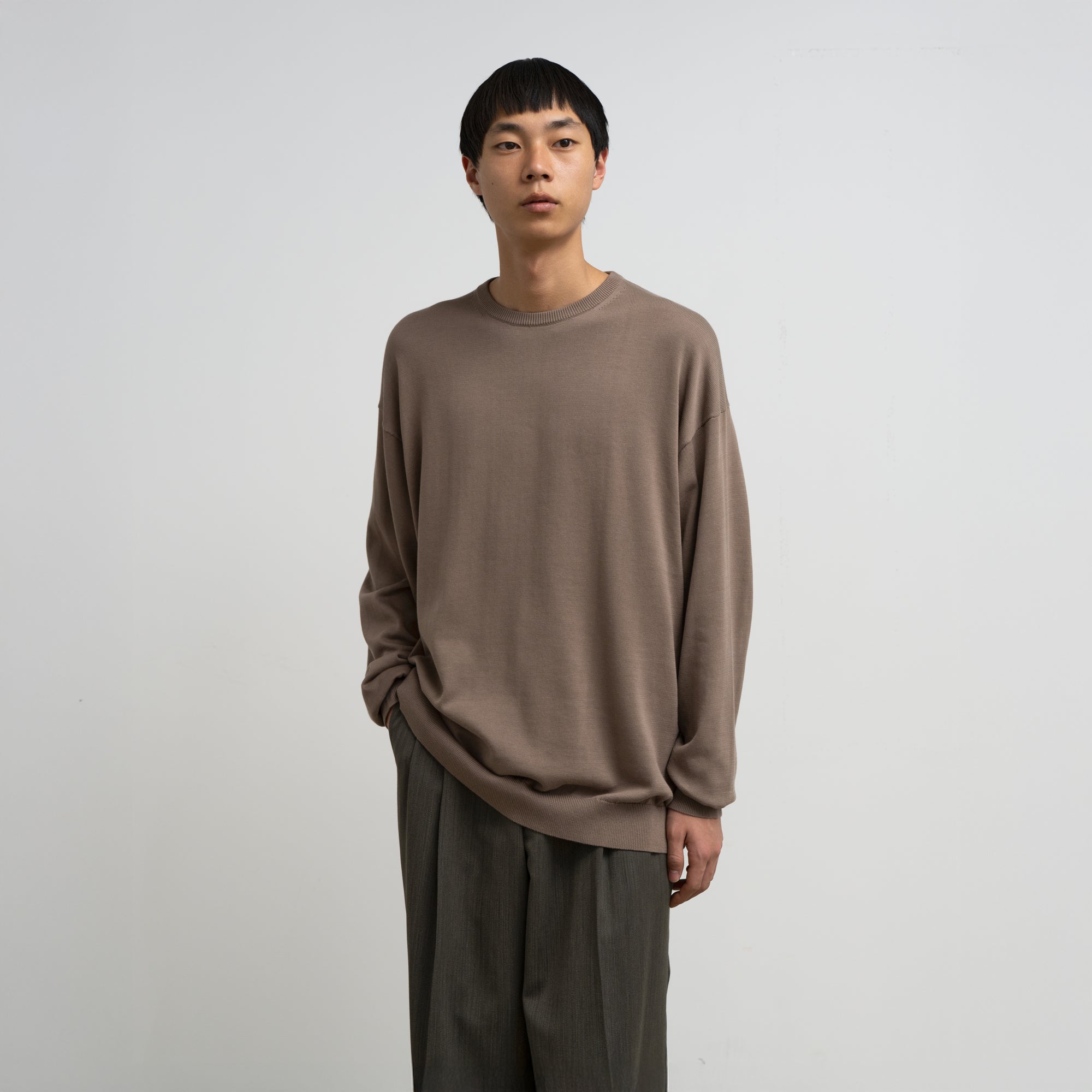 イタリアを拠点に世界中に高品質な糸を供給するEmilcotoni社のスビンコットンを採用。糸本来が持つ上品な光沢と、豊富な油脂分による滑らかな肌触りが特徴です。Graphpaperらしいビッグサイズのクルーネックニット。